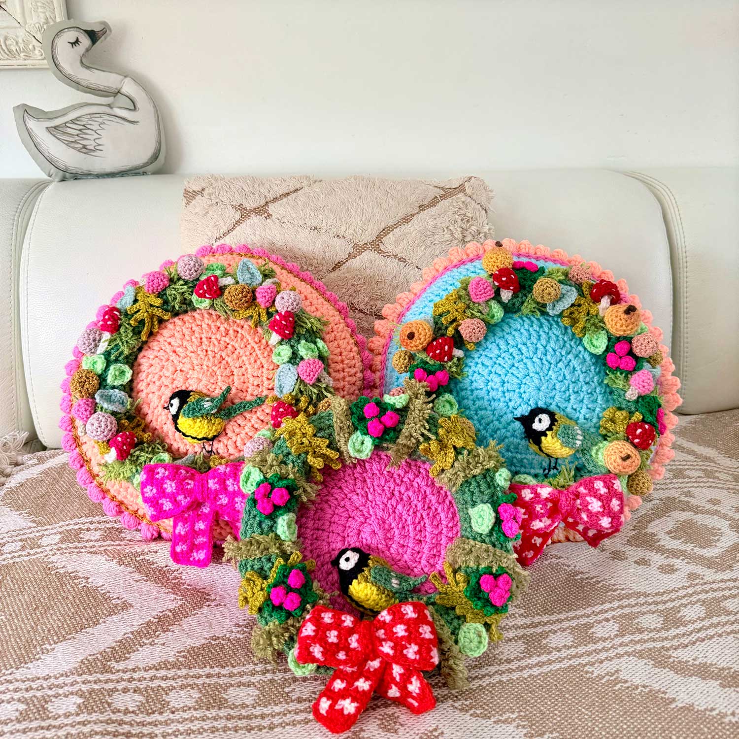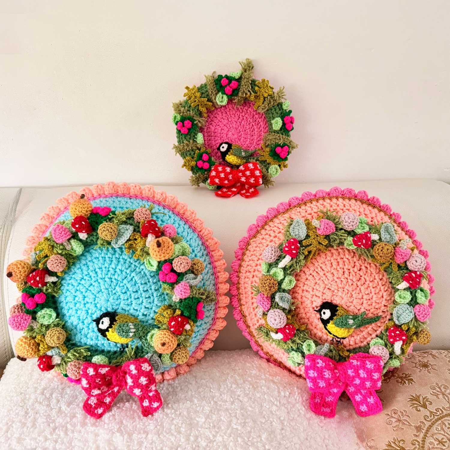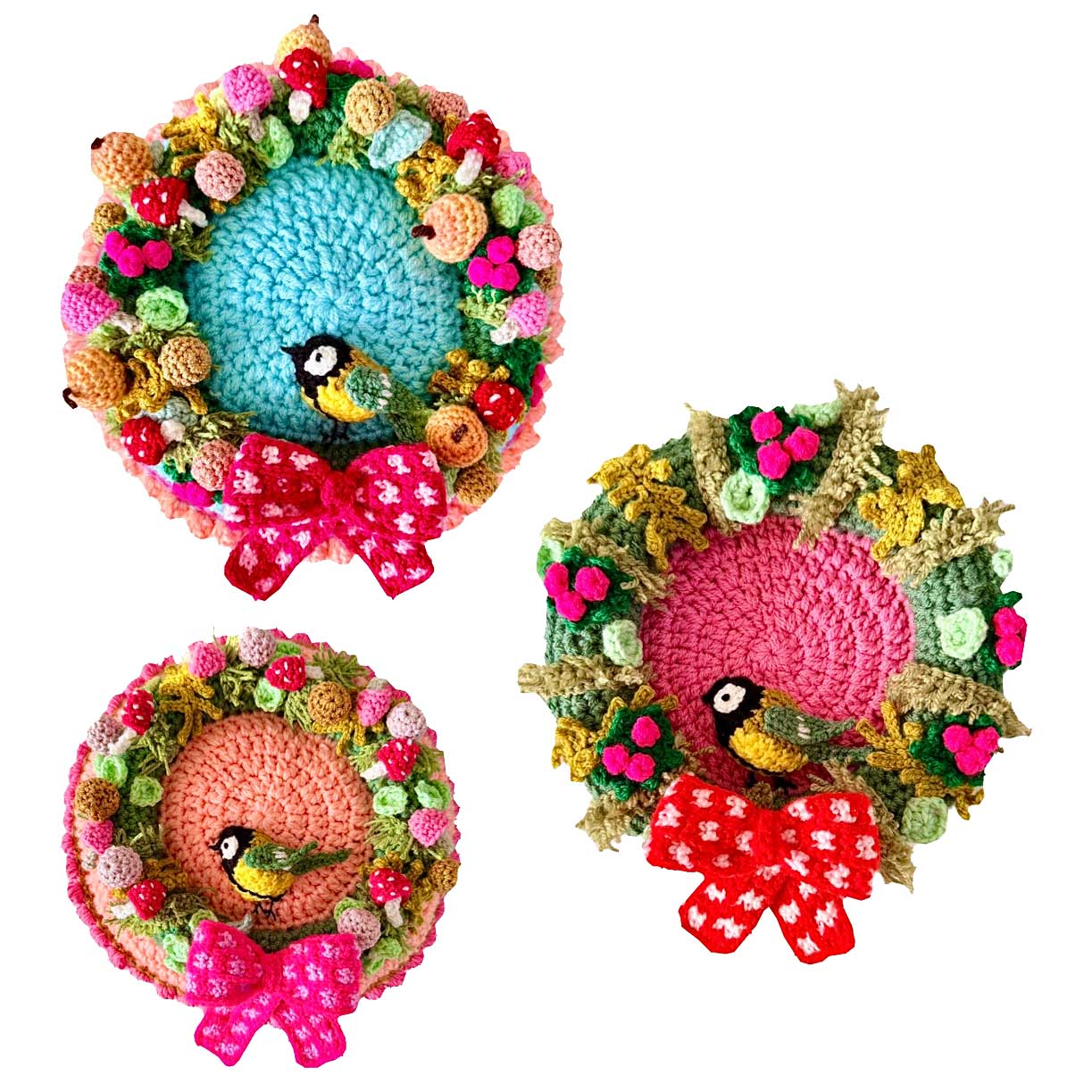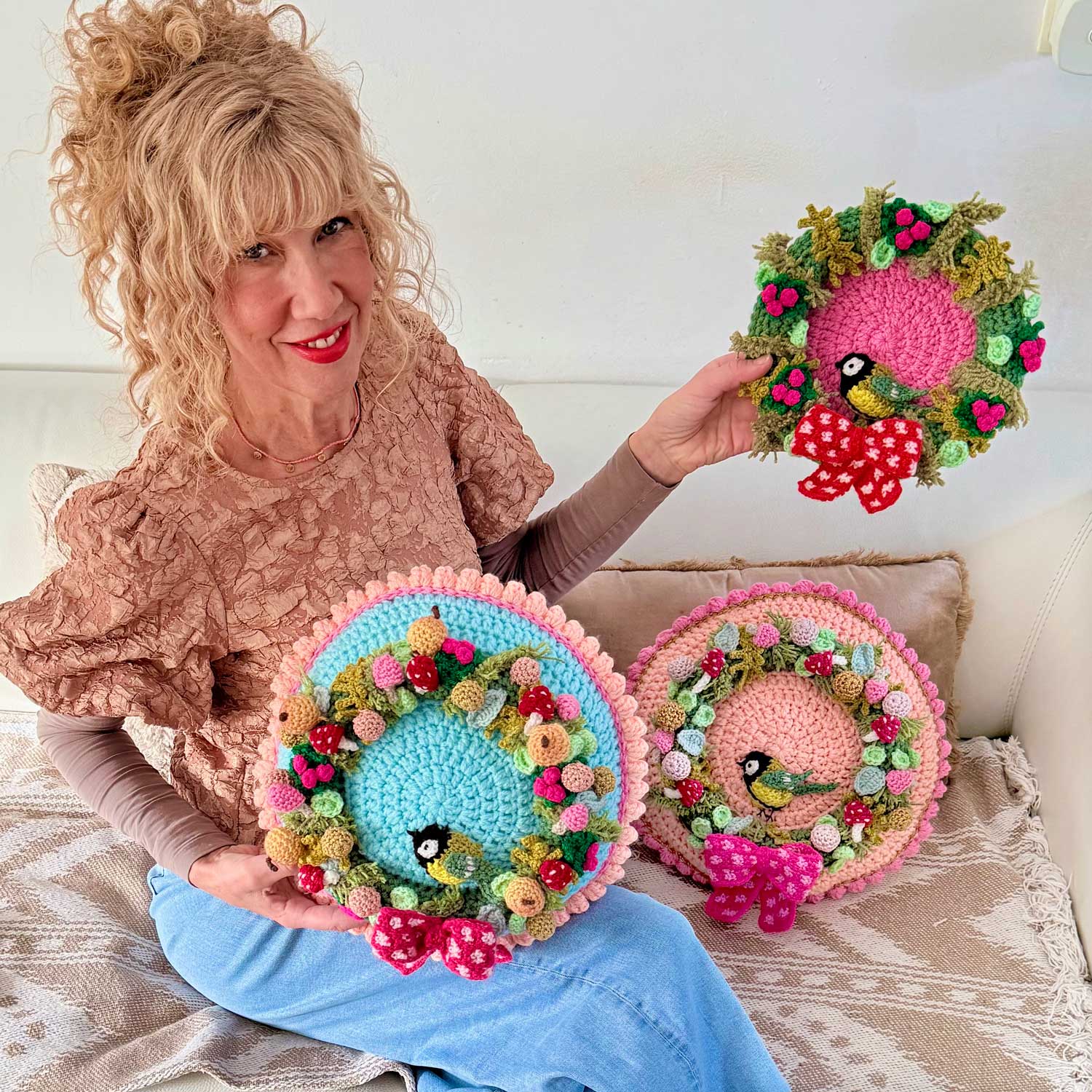 Bring some festive cheerfulness into your home with this charming cushion! The pattern description has been carefully explained and illustrated to enable you to crochet the wreath and the little titmouse just as shown in the pattern photos. The ten separate decorative elements it contains, such as apples, berries, mushrooms and decorative baubles, can also be mixed and matched for endlessly different yet individual results. Worked with Scheepjes Colour Crafter or other similar DK or light weight yarns, this project is simply a joy to dive into!